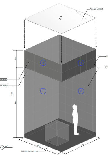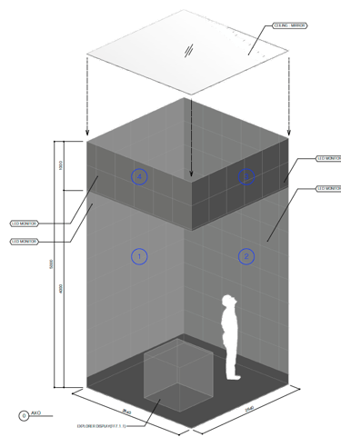 The space was a cube shape with 4 video on all sides within the store